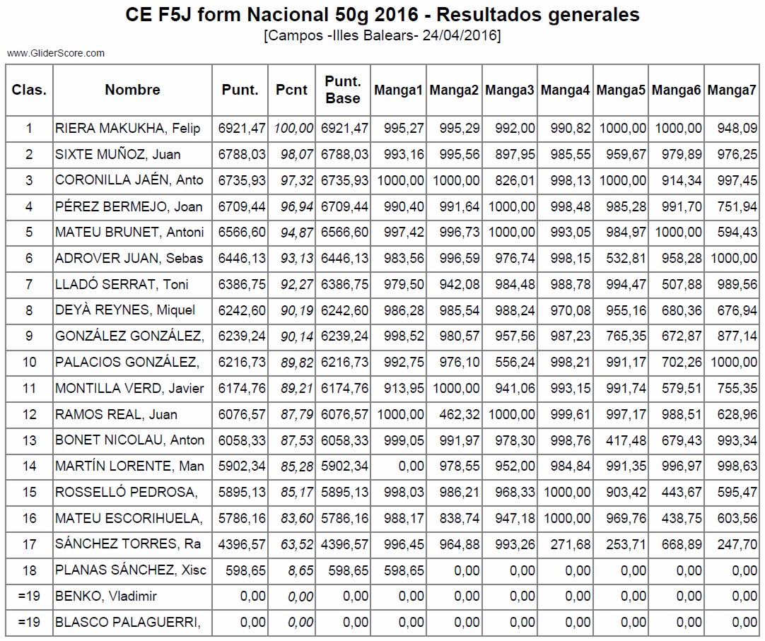 Este domingo 24 de abril se ha celebrado en Campos (Mallorca) el Campeonato de España de F5J-50 gramos.