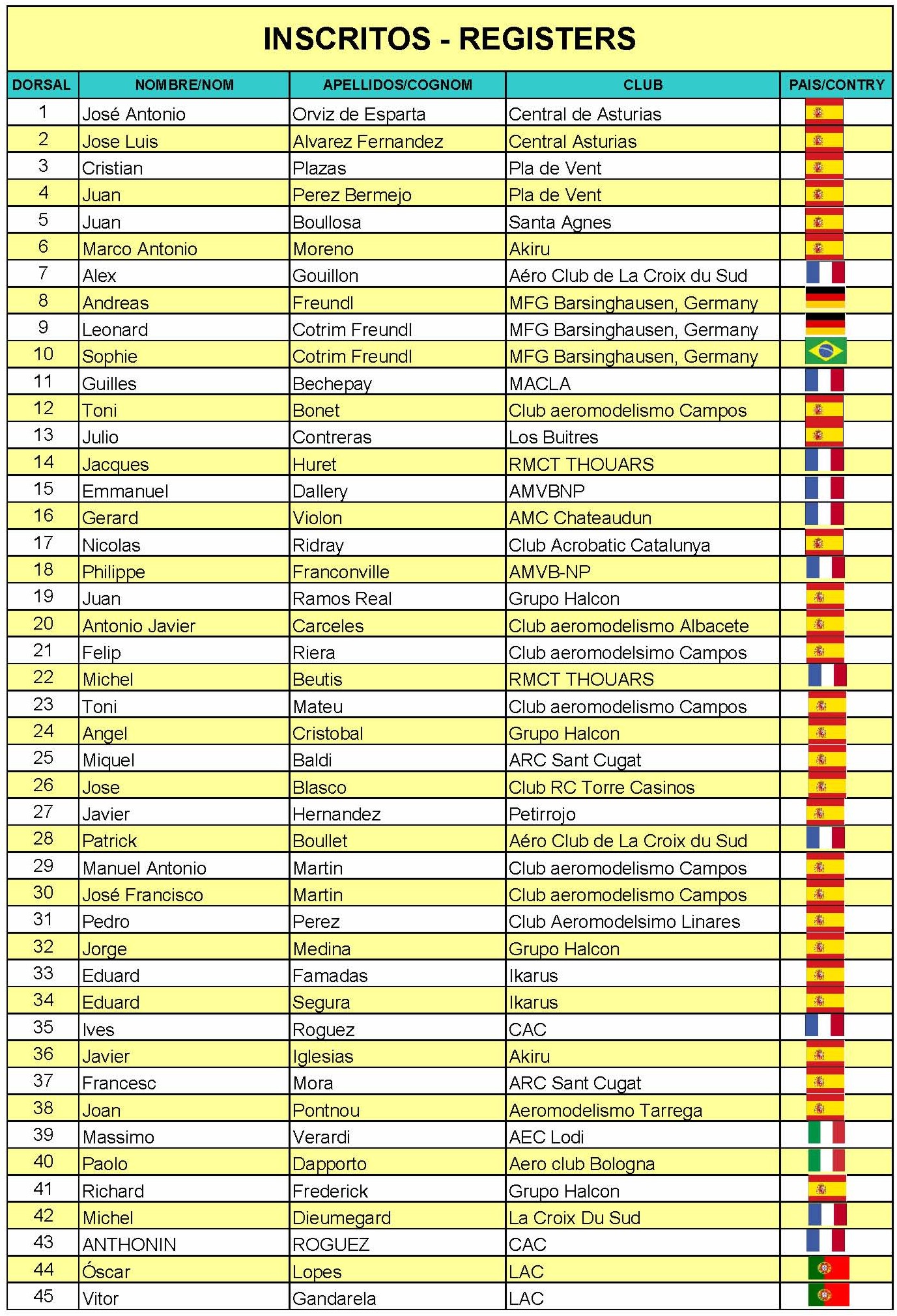 Al final se darán cita 27 españoles, 11 franceses, 2 alemanes, 2 italianos, 2 portugueses y un brasileño afincado en Alemania.