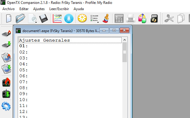 El primero es la programación a través del ordenador. OpenTx ofrece una pequeña pero potente aplicación, OpenTx Companion, que nos ayudará en la ardua tarea de la programación. Además, esta se realiza sin tener el modelo in situ, sino con la ayuda del simulador que ofrece el programa.