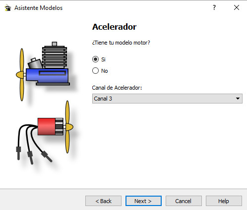 Ahora definimos si tiene motor y en que canal lo queremos. Seleccionaremos Si y el canal 3 para controlarlo.