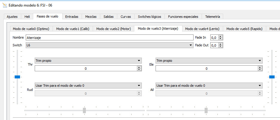 Esta línea de mezcla es importante. Daros cuenta que volaremos con el stick de motor arriba del todo, así que esta línea será la que aportará el valor que sitúe las aletas de flaps en su posición neutra.