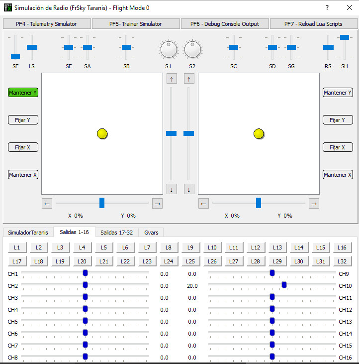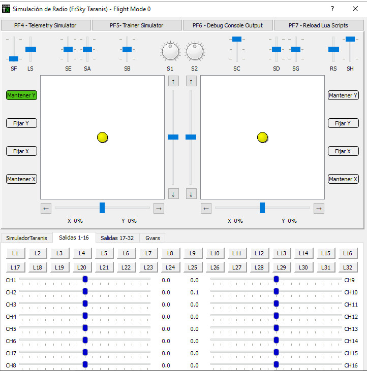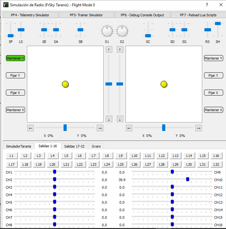 Es momento de comprobar en el simulador la mezcla realizada. Os animamos a que jugueis un poco con los controles que hemos ido añadiendo hasta ahora SA, SB, SC y sticks para ver como evolucionan los distintos canales.