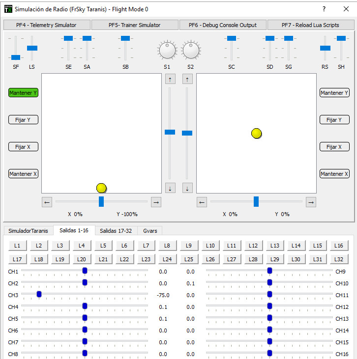 De esta manera ya no tenemos trim y la variación del stick de motor nos dará valores comprendidos entre -100 (motor parado) y 100 (motor a máximas revoluciones). Primer requerimiento cumplido.