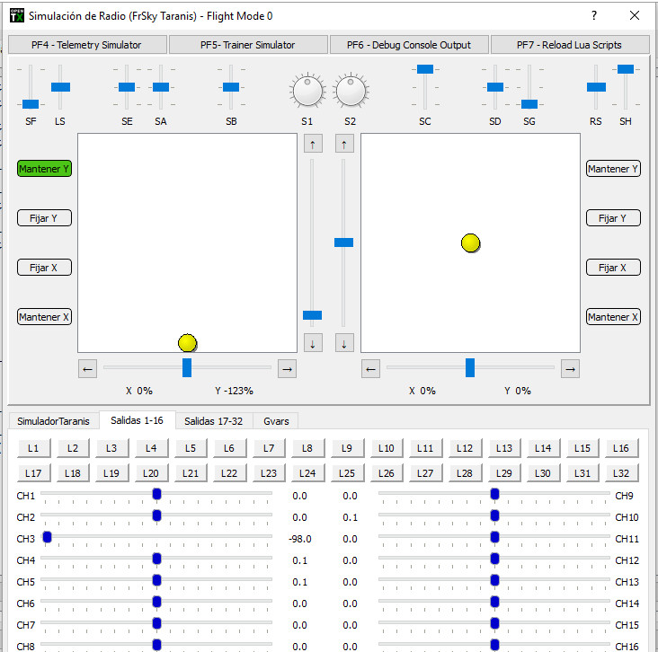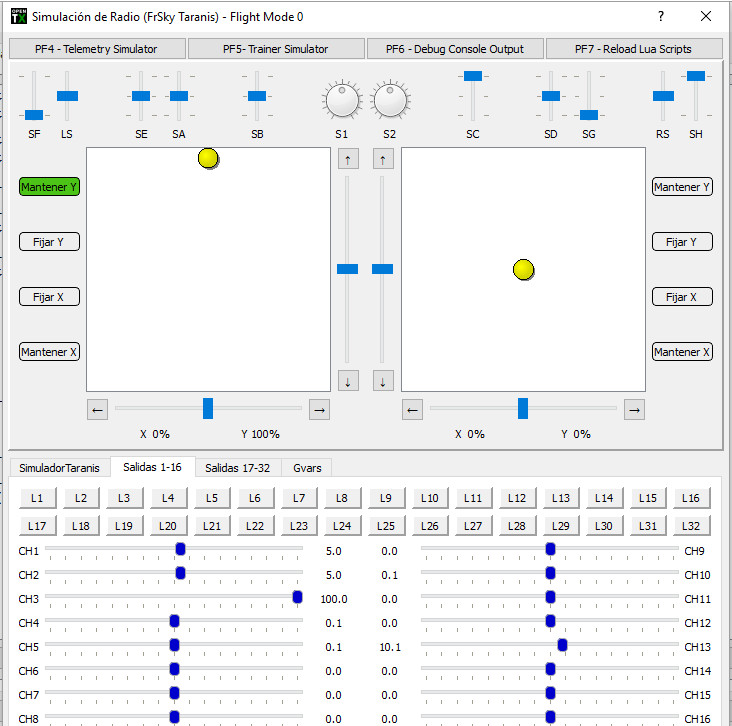 Si abrimos el simulador, vemos como a ralentí no compensamos. Según subimos el stick de motor, la profundidad real (CH1 + CH2) compensa hasta un 5%.