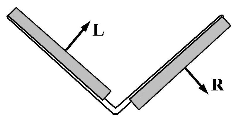 - Función de Guiñada: La cola en V funcionará como timón de dirección cuando las aletas se deflecten en sentido opuesto. En este caso, la componente vertical de una aleta anula a la otra, quedando únicamente la componente lateral y, por tanto, el resultado es el mismo que produciría el timón de cola convencional.