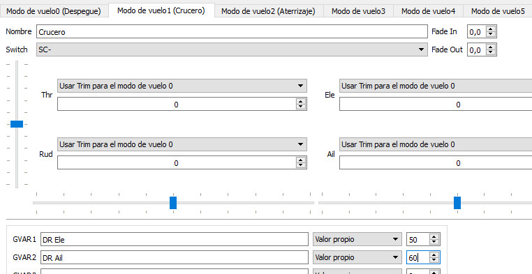 Precaución: Si dejáramos valor 0 en alguna de estas variables en alguna de las Fases de Vuelo definidas….nos quedaríamos sin mando…..