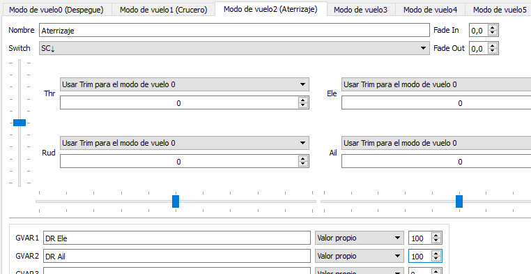 Ya tenemos 3 modos de vuelo, así que ahora vamos a darles contenido. Trabajamos primero con la sensibilidad de mandos…..o deberíamos decir ¡¡¡¡Dual Rate!!!!