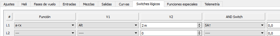 Si SA no estuviera arriba, la altura de seguridad estaría desarmada y el drone puede subir, bajar, aterrizar con normalidad (L1 no sería cierto aunque estemos por debajo de los 2 metros). Si subimos SA, la altura de seguridad queda activada y L1 será cierto en el momento que el drone esté por debajo de los 2 metros.