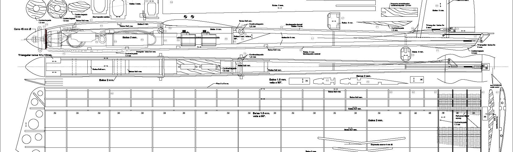 En el desarrollo de este proyecto se van ha construir tres modelos, el sistema de construcción va a ser sencillo ya que será de contrachapado de marquetería forrado con XPS de 2 mm para el fuselaje o alguna variación sobre esta idea del constructor.