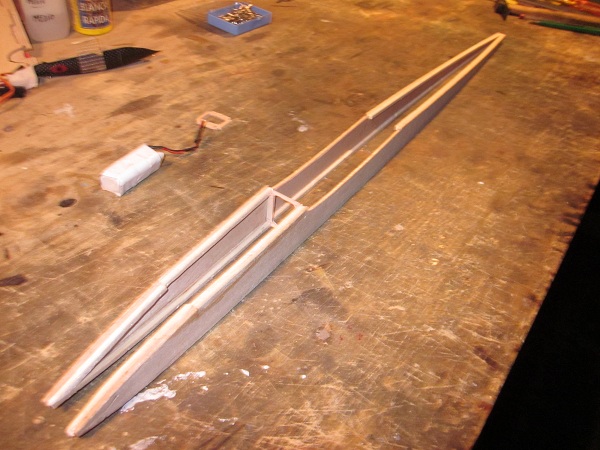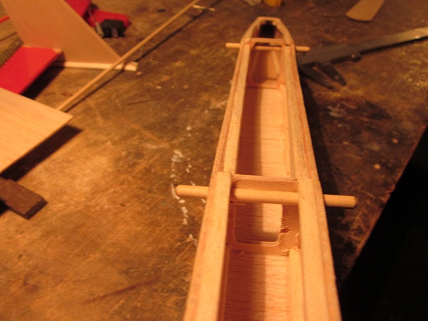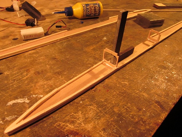 Está muy bien el nuevo fuselaje, solo un par de observaciones aunque creo que quizás sea tarde. El morro de los veleros por lo general es más endeble de lo que creemos y veo que el del fuselaje que has hecho lo tiene bastante largo y solo le pusistes los largueros en las esquinas y la punta no es de madera maciza, te recomiento que con el mismo contraenchapado le hagas unos refuerzos de +/- 1cms. de ancho que también te servirán para discipación de los impactos y así no sufra el morro con el tiempo y los golpes, algo así en los laterales por lado interno y que te queden apoyados a los largueros de las esquinas. También puedes hacerlos con balsa dura de 2mm x 1cms.