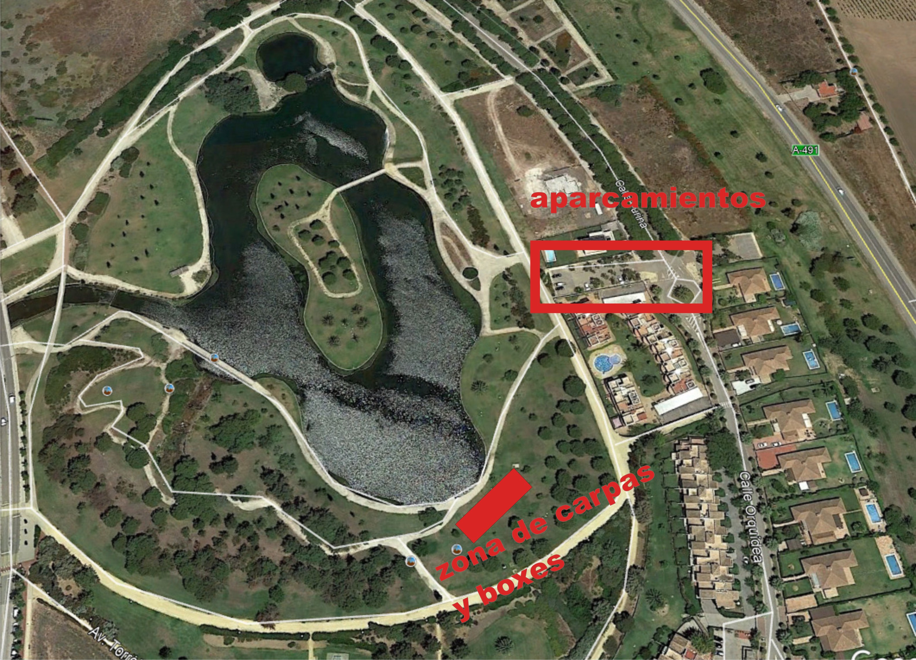 Pongo un plano del lago con el sitio donde estaremos y la zona de aparcamientos.
