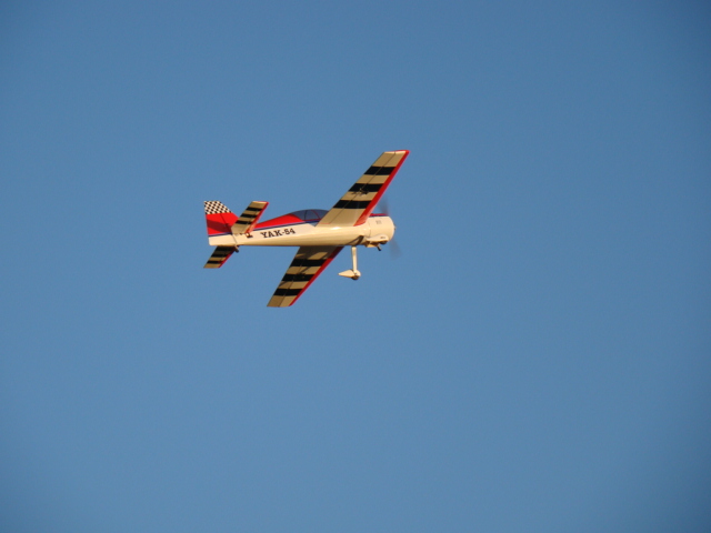 Hola amigos, aun con los nervios en el cuerpo y con un nudo en la garganta os hago participes del estreno de mi nuevo avión. Tras un largo tiempo de ajustes y dudas esta tarde ha ido al aire y la verdad estoy muy contento. Como os he comentado el avión es un Yac-54 con motor DL-50, centralita Escotec 7-2, y servos hitec 5645 MG. El avión vuela de miedo es muy noble y como se aprecia en una de las fotos casi mantego un torque-roll.