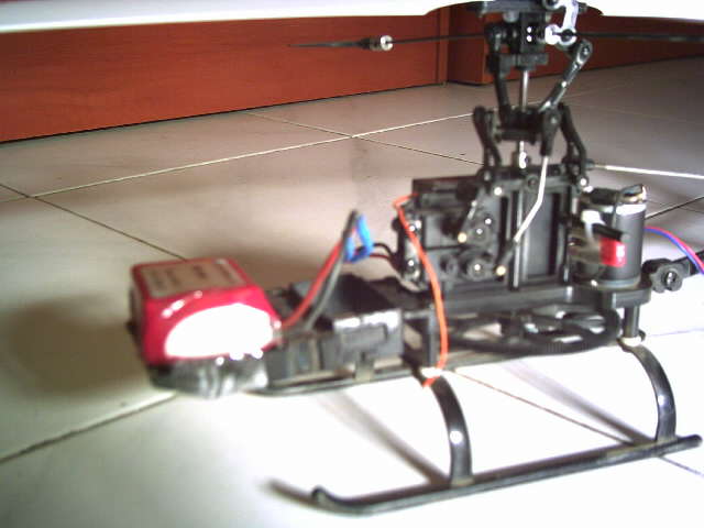 Pues aunque mucho tunning no sea le da un aspecto mas agresibo, y los resultados!!!!!!1 sin comentarios, añadiendo peso en el tubo de cola y adelantado la bateria de LIPO he logrado que el heli se levante recto completamente sin ningun valanceo, ha mejorado muchisimo en estabilidad, el peso por ahora es poco, 260 gramos, creia que subiria algo mas, pero no, ahun queda por meterle mas peso para vuelo en exterior, se levanta como una maquina de matar, con precision y nobleza algo raro en este tipo de helis de paso fijo, me acojono hasta yo!!