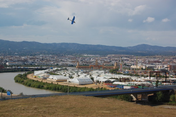 Sale volando bien, controlo con la derecha mientras que cojo bien la radio y entonces el velero se mete a izquierdas y morro arriba fuerte girando a viento en cola