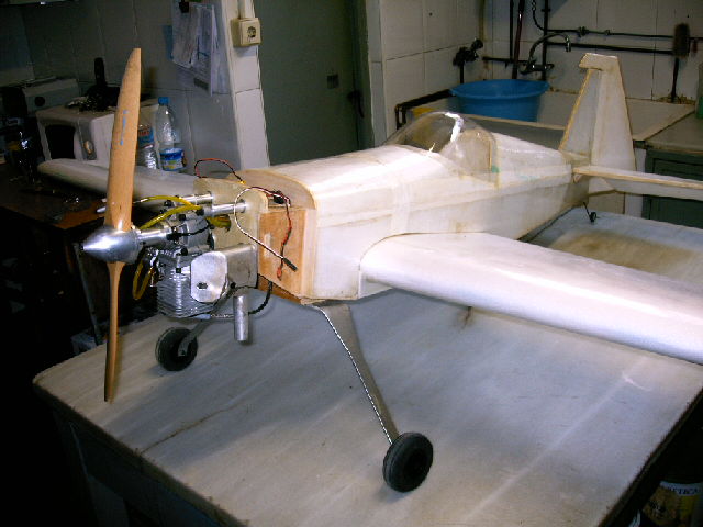 hola charlie,ya se que el tema es complicado yo hace bastante tiempo que ando liado con el porex y por eso creo que un poco se lo que estoy haciendo como tambien se que tendre que hacer bastantes pruebas hasta dar con el modelo apropiado, hay que tener en cuenta que el depron absorve bastantes las vibraciones y el modelo tiene una estructura interna de contrachapado lo unico que hago es sustituir el depron por la balsa, que tampoco hay tanta diferencia, lo unico que le ganas peso. yo tengo un egge 540 de 2 metros y pesa con ese motor 7 kgs. y no hace mas que volar me refiero que no hace 3D y este modelo me va ha pesar menos de 5 kgs.hoy lo he arrancado y produce menos vibraciones que con el otro de balsa y no tengo ningun problema, como es un poco cabezon le reforzare un poco la parte de la cola, ya he empezado a poner la electronica y en poco tiempo lo voy a volar, que en un principio con que vuele me conformo. un saludo una foto.