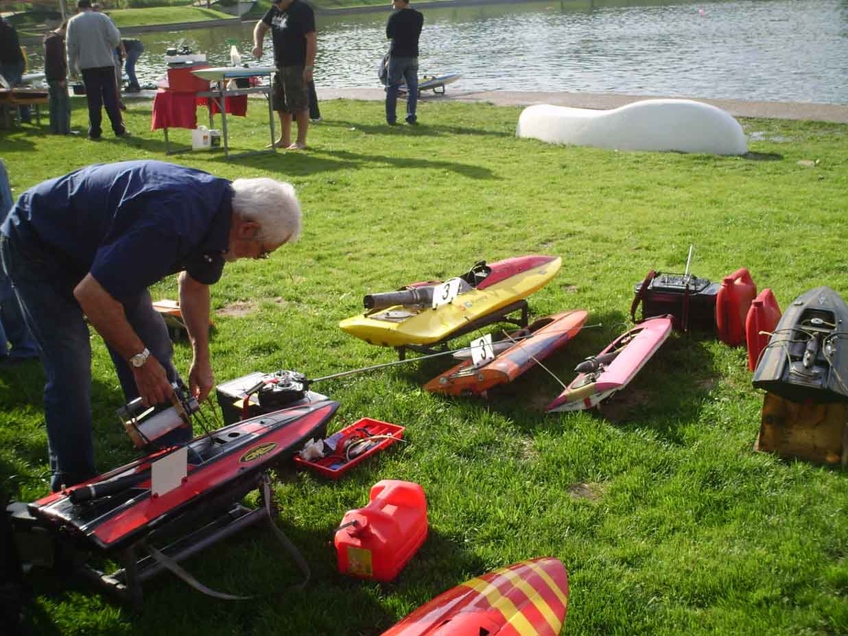 La carrera de 3.5 no la ví, estaba liado preparando la de 7.5 y no presté mucha atención. La de 7.5 la gané "por los pelos" (en la misma vuelta por 2 segundos) ya que como dice Jose Ignacio la Lancha de Jesús era un auténtico avión, imposible cogerla por velocidad y te obligaba a apurar las boyas aún más para acercarte. A falta de de unos minutos para el final tuvo que recuperar una boya perdida lo que me permitió pasarle y aguantar el primer puesto con un final apretadísimo como se ve en la clasificación. Del resto de pilotos se que a Carlos se se rompió el motor y del resto poco me pude fijar mientras corría, se que la lancha de Javier Granero también iba muy bien aunque tuvo problemas y del resto poco puedo contar.