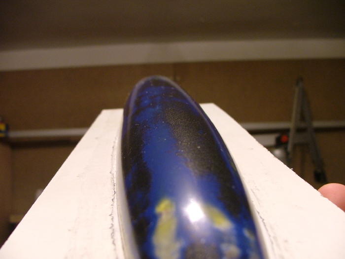 la mitad superior es la de fibra. se ve la zona "chunga", tendre que echar resina para evitar roturas