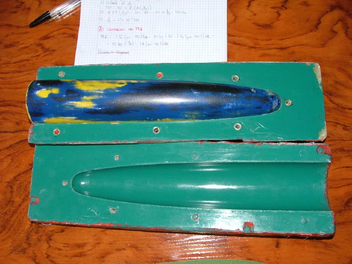 Para hacer un fuselaje sería igual, pero más grande, y empezaría a pensar en poner unos tubos de hierro a modo de largueros para evitar que el molde se deforme con el tiempo si solo es de fibra. Si es de arena, pues se los pondría si lo piensas cerrar con gatos. Si lo cierras con tornillos, entonces no hace falta.