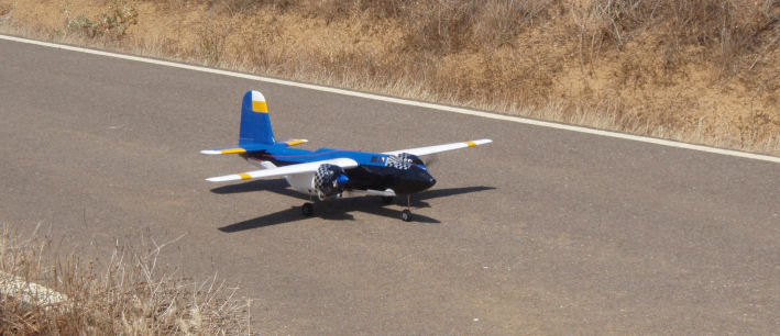 Lo volé a mediados de Agosto en Palencia, de ahí el nombre del avión. El lugar elegido es una carretera que da a un pueblo abandonado. El único problema son los vientos y que la pista tiene zanjas a los lados, pero como hay mucha paja y barro, las salidas de pista no suelen ser muy problemáticas (nada que no se arregle con un poco de superglue).