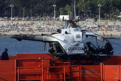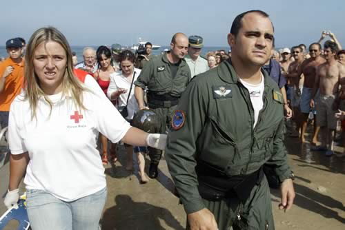 Lamentablemente este año pudimos contemplar el accidente de un BO105 de la Guardia Civil, el cual tras una maniobra radical no tuvo espacio suficiente para conseguir nivelar el aparato y se precipitó contra el mar a escasos 50 metros de la orilla donde yo me encontraba.