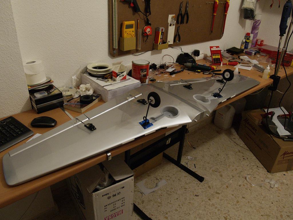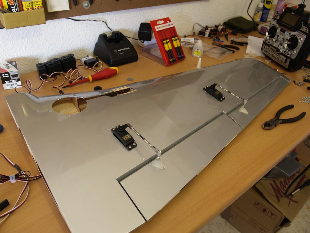 Un Consejo.Una de las modificaciones que le hice fue meter los servos de alerones y flaps en el ala, les hice una caja de registro y solo sobresale la varilla del servo.No es el primero que veo que en un mal aterrizaje se ha cargado los cuatro servos.Te pondre fotos de como lo tengo hecho.