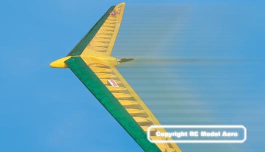 Como dice Mr Flowers vuela muy bien y es muy fácil de construir. Lleva un perfil plano-convexo, sin deformación ni reviramientos y como explico en la revista, solo hay que cambiar los alerones de posición (el derecho en el ala izquierda y viceversa). Es muy ligera, como velero puro 17 gramos de carga alar y con un motor eléctrico 550, siete elementos Nih 3000, regulador, etc. pasa a 24 gramos por decímetro cuadrado de carga.
