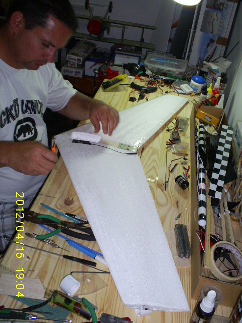 No me quedó mas remedio que cortar atrás un buen trozo para adelantar el motor y poder conseguir esos 18-19 cm de CG,lo malo es que pierde un poco sustentación en el aire cuando planea.