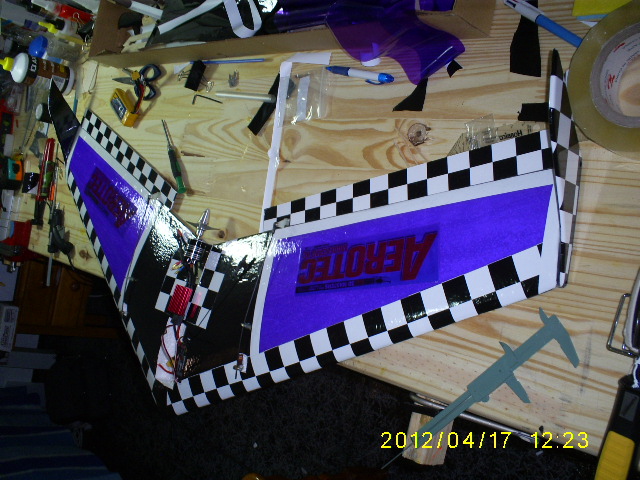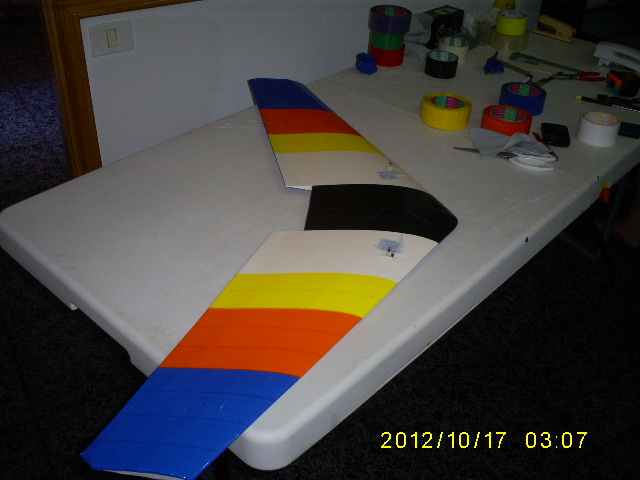 Aca aremos pie al forrado del mismo en deves de usar cinta de colores use oracover ya que quedo bien reforsada puedo forrarlo con oracover , empesamos con los alerones y winslet , a seguir con media ala ya despues la veremos terminada y al probar un video a ver como vuela , segun sus medidas y longitudes deveria de andar bien pero se sabe en su estreno , a por cierto si alguien sabe que porcentaje lleva los alerones y timon de profundidad se lo agradeceria .
