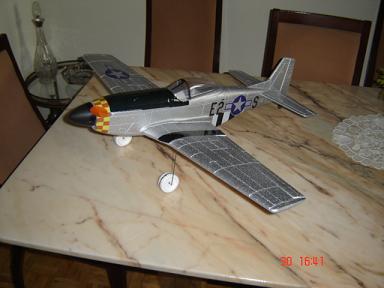 Antes de montarlo, os aconsejo que mireis estas páginas, os ahorrareis algunos problemillas.Hace poco me decidi por un P51, lo monte, lo probe con el motor 370 con reductora,con el centro de gravadad en su sitio, sin direccion, solo con profundidad y alabeo,y con un pack de 7 elementos AAA de 750 Mah.Al salir lo note pesado de cola y al aterrizar lo hice un poco mas fuerte de lo normal,resultado, el motor por un lado, el morro por otroy la profundidad rota.Aun estoy reparandolo.Espero que en un par de semanas este en el aire.