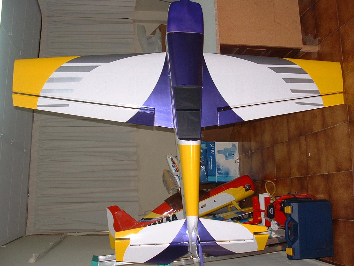 hola rafa,este avion se han vendido algunos y no se han vendido mas por la decoracion que tenemos en la web,aun asi tengo dos compis que lo tienen uno de marbella en rojo que lo va a equipar con un roto35cc en gasolina,y otro chaval de sevilla que le va a meter un da50,es la informacion que puedo darte ,le dire a este ultimo que lo tengo en el msn que te de informacion,yo lo que puedo adelantarte es que es del mismo fabricante que el yack 54 y que trae los mismos accesorios que el,aluminio ,rodamientos,horn en fibra,bisagras tipo robart etc,y te dejo unas fotos de la 2ºdecoracion la cual no esta en la web,saludos