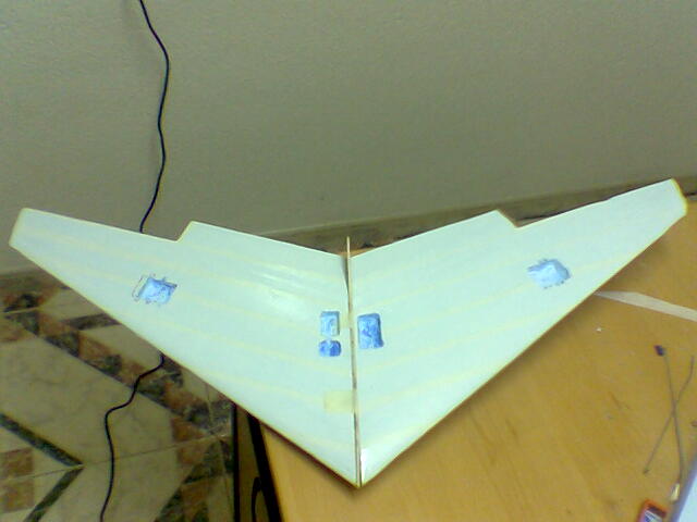 si vas con perfiles simétricos y sin torsión tienes que levantar un poco los elevones