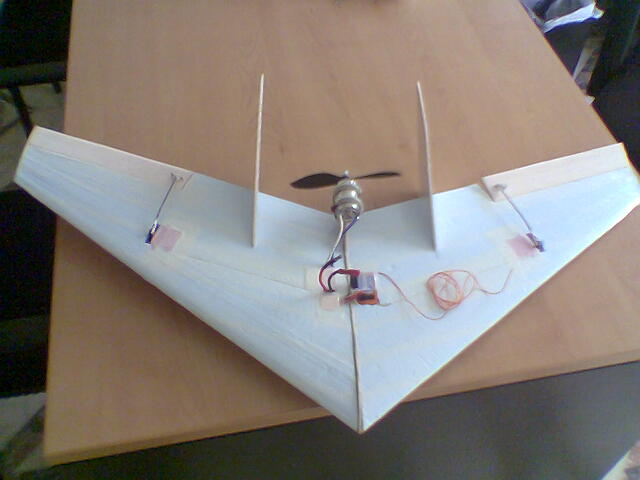Ya vuela. Despues de varios intentos, y de ir adelantando las baterías, por lo menos 2 cm. de donde teóricamente deberían estar para que el CG estuviese a 192 mm de la punta. pero al final ha volado. De lujo. Pero pesa mucho. Con motor coje velocidades considerables. Pero como le quites chicha baja también muy rápido. Las trepadas casi imposible, salvo que lo subas con ángulo, hasta 50 o 60 grados aun sube, mas ya no. El manejo es muy suave, y es capaz de girar al sentido contrario en 5 o 10 metros.