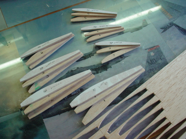 El fuse y la cola en V llevan terminados desde la semana pasada así que me he metido con el ala. He recortado unas plantillas de las costillas para poder hacer mas de forma sencilla.