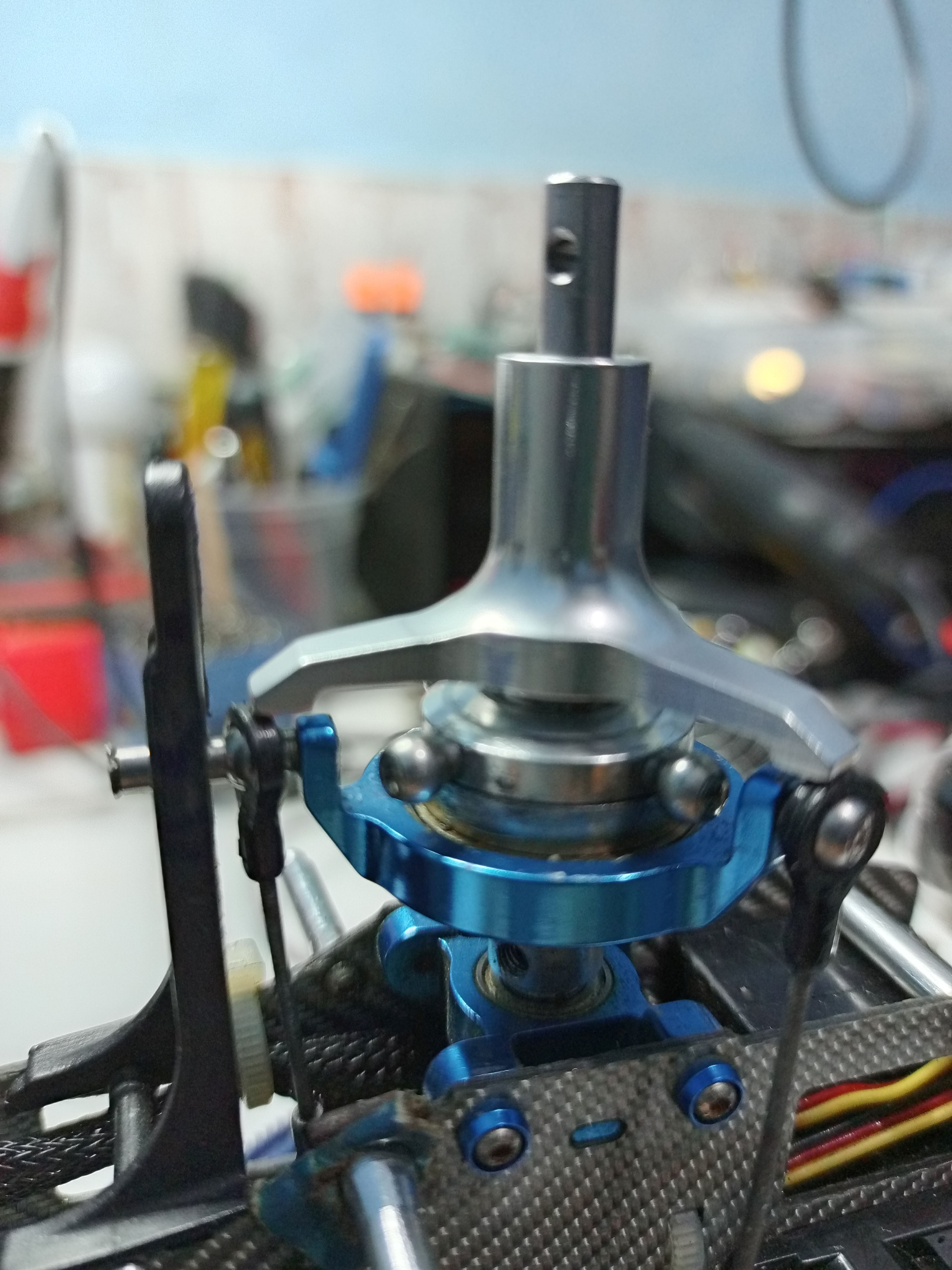Otra, estoy tratando de ajustar el heli ( tengo un radio viejito el Spektrum DX7) y estoy empezando por nivelar el plato ciclico, y cuando lo nivelo colocando todos los servos a 90º, (que tengo que ayudarlo con el sub trim )con la palanca al 50% todo bien, pero al subir la palanca al 100% y a 0%, se desnivela y no se que hacer en ese caso