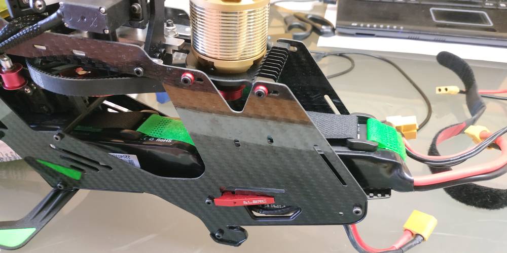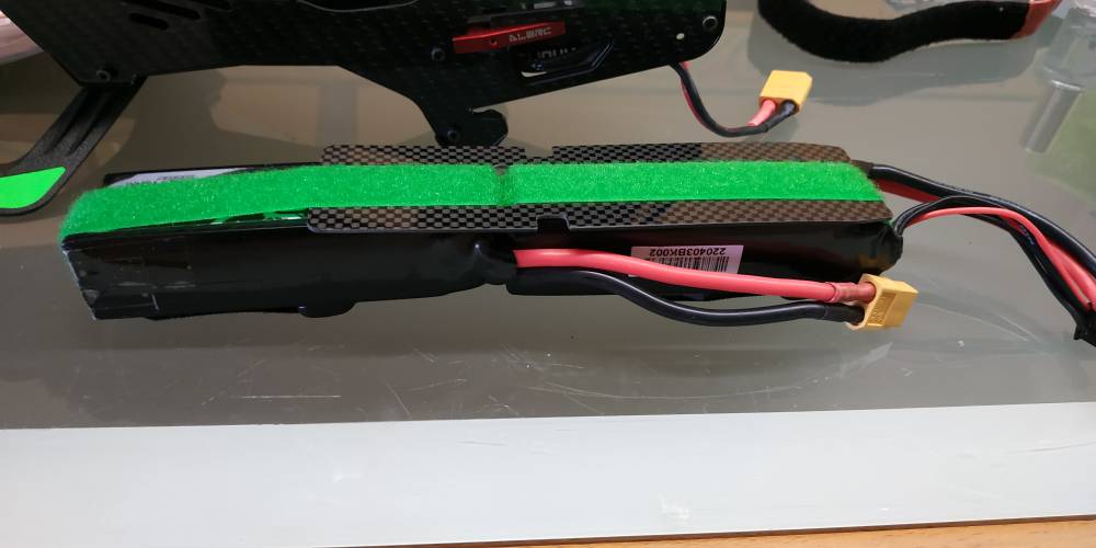 Hago otro aporte. Gracias a que puse el receptor sin carcasa y enfundado en termorretractil, lo pude poner junto al kbar, de esta forma consigo tener en el piso inferior de la batería más sitio. Así puedo utilizar mis baterías de 3s2200 en serie, son económicas y fáciles de encontrar, ya que la medida de 1500-2600 miliamperios de 6s es más difícil de encontrar y más cara.