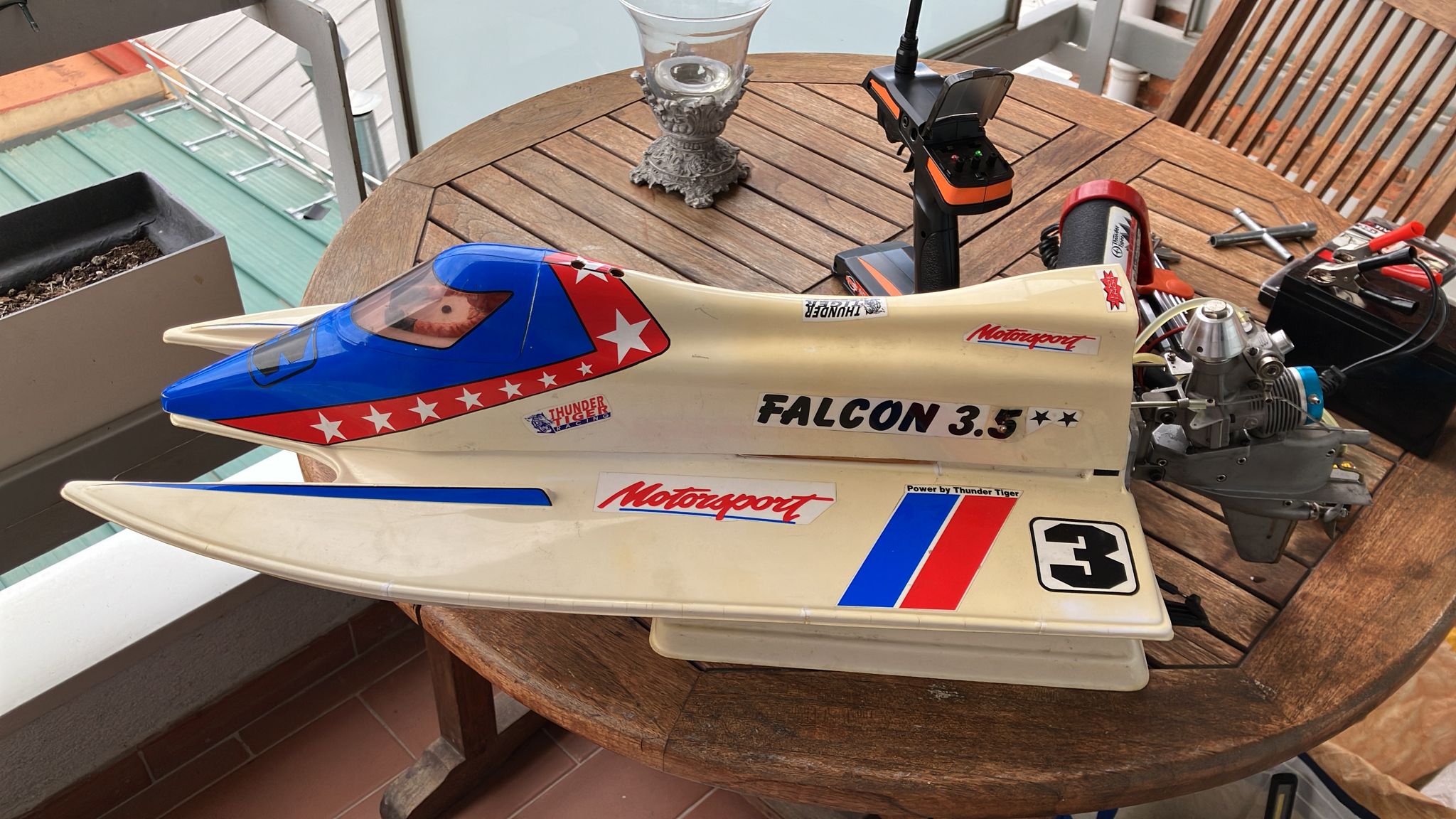 1.- Thunder Tiger Falcon 3.5 gasolina. A falta de una puesta a punto lo más relevante es que el casco se ha quedado amarillo dónde le ha dado la luz solar, algún consejo de qué puedo hacer con él?.