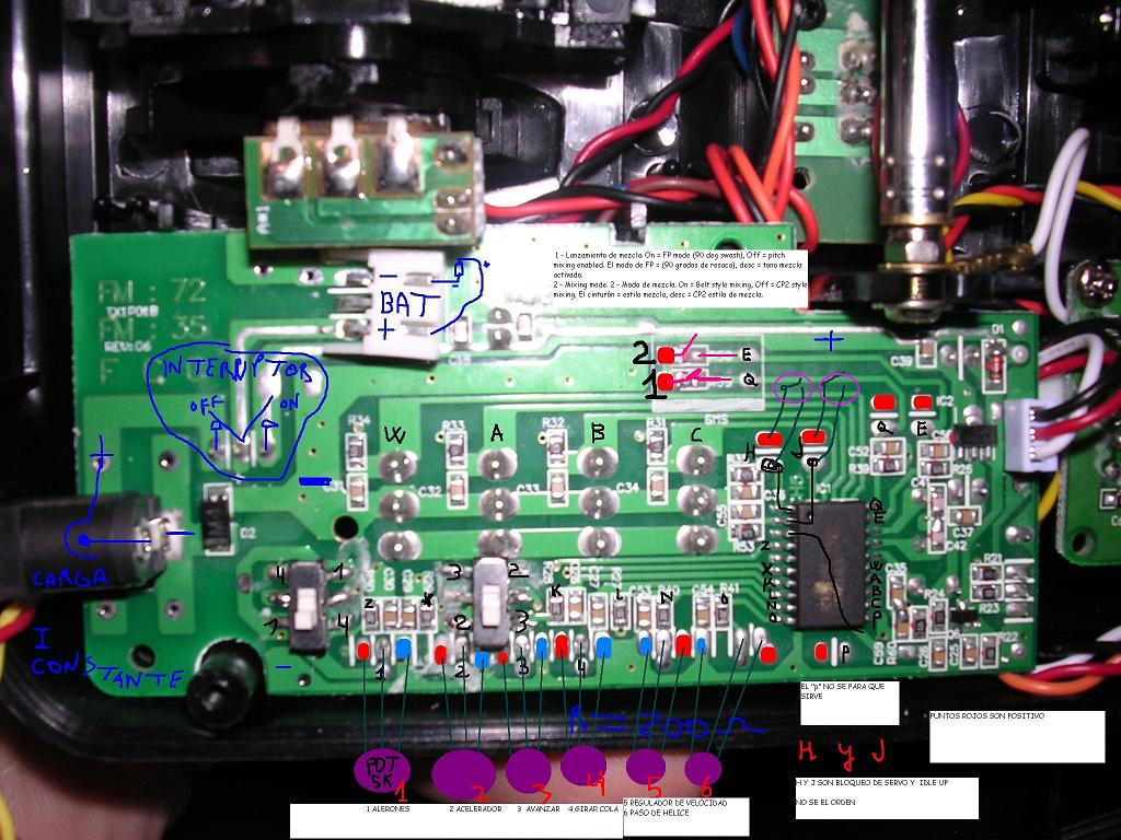 comentar que el interruptor de la izquierda intercambia la posicion de cola y alerones (abajo modo 2)