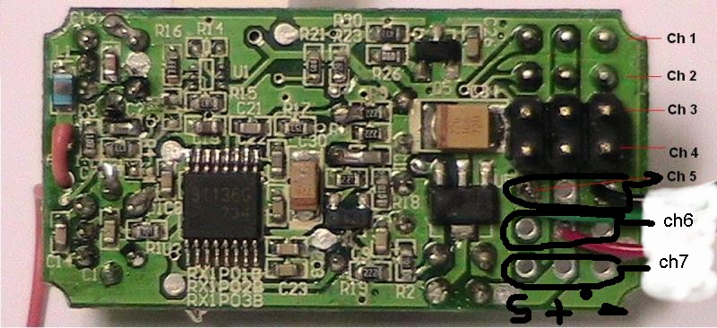 los canales 5 y 6 y los interruptores de bloqueo de giroscopo y el idle se le pueden añadir segun se ve en la foto.