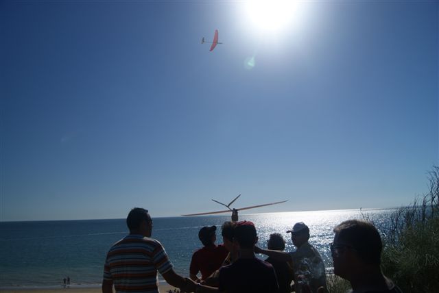8) Buen trabajo habeis hecho con el Apogee, enhorabuena a los tres... toda una auténtica pasada. Alioth, muy chulo ese video, increible como caza las térrmicas desde tan poca altura y todo un auténtico curro en destreza para arañar al modelo hasta el último gramo. En cuanto al del amigo Francisco, puedo dar fé que hace ladera sin que exista viento y se sustenta con un suspiro.... :) :) :) :) :) :) :) :) , un par de fotillos de nuestro amigo de Lebrija y su velerito durante el pasado Katie Martin Tribute en Rota... :)
