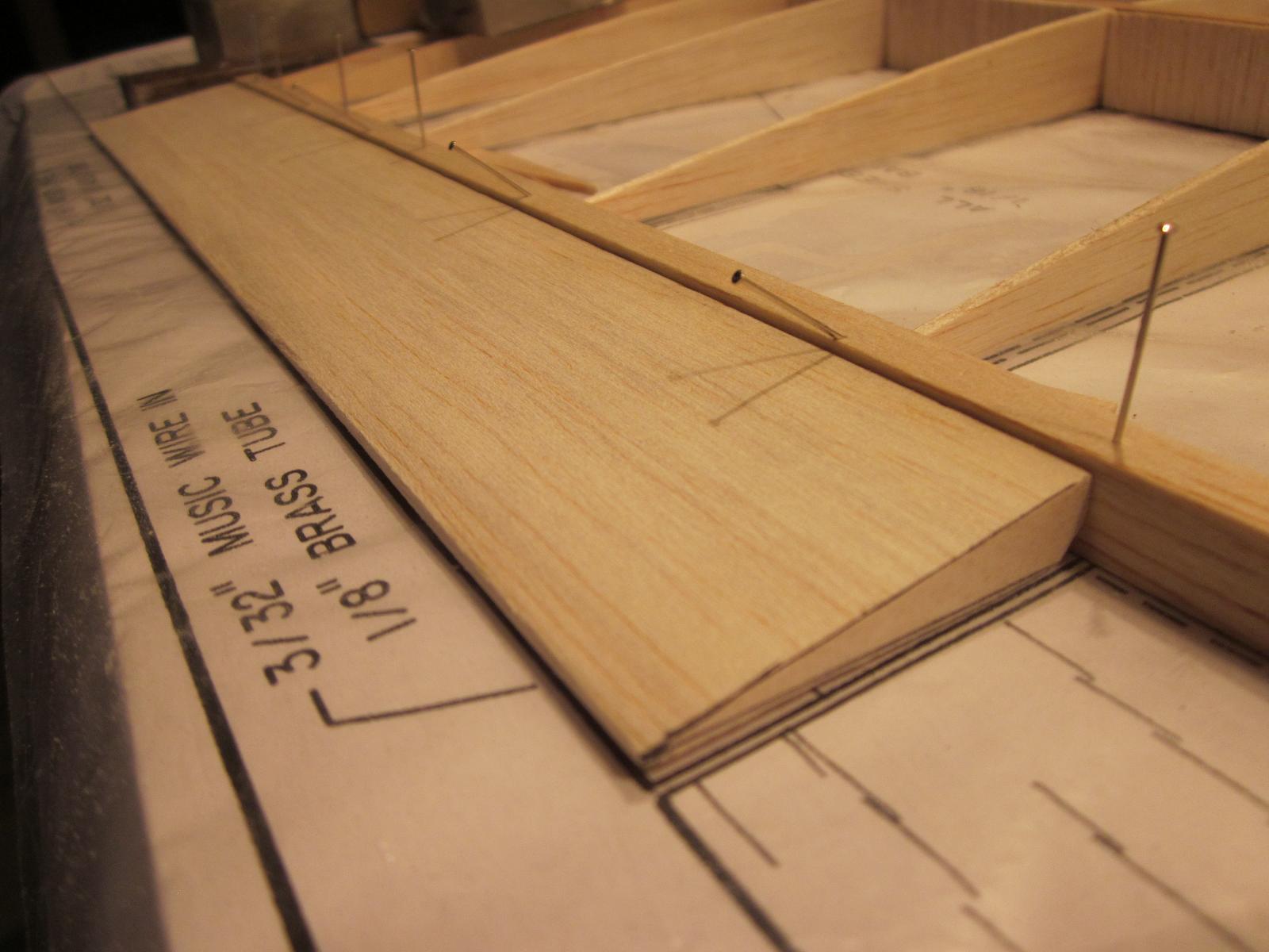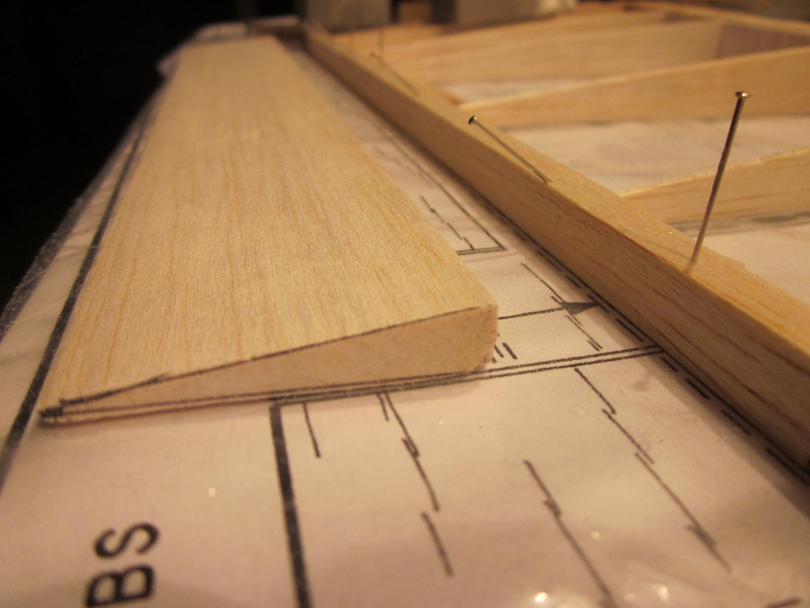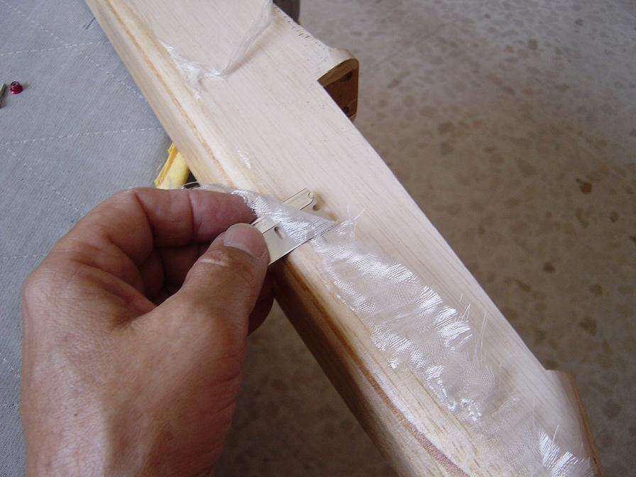 :roll: 8) Hola y buenos días, bueno pues un poquito mas del ala, en este caso he estado tallando en balsa de 8 mm el borde de fuga en su zona central, saludos… :wink: