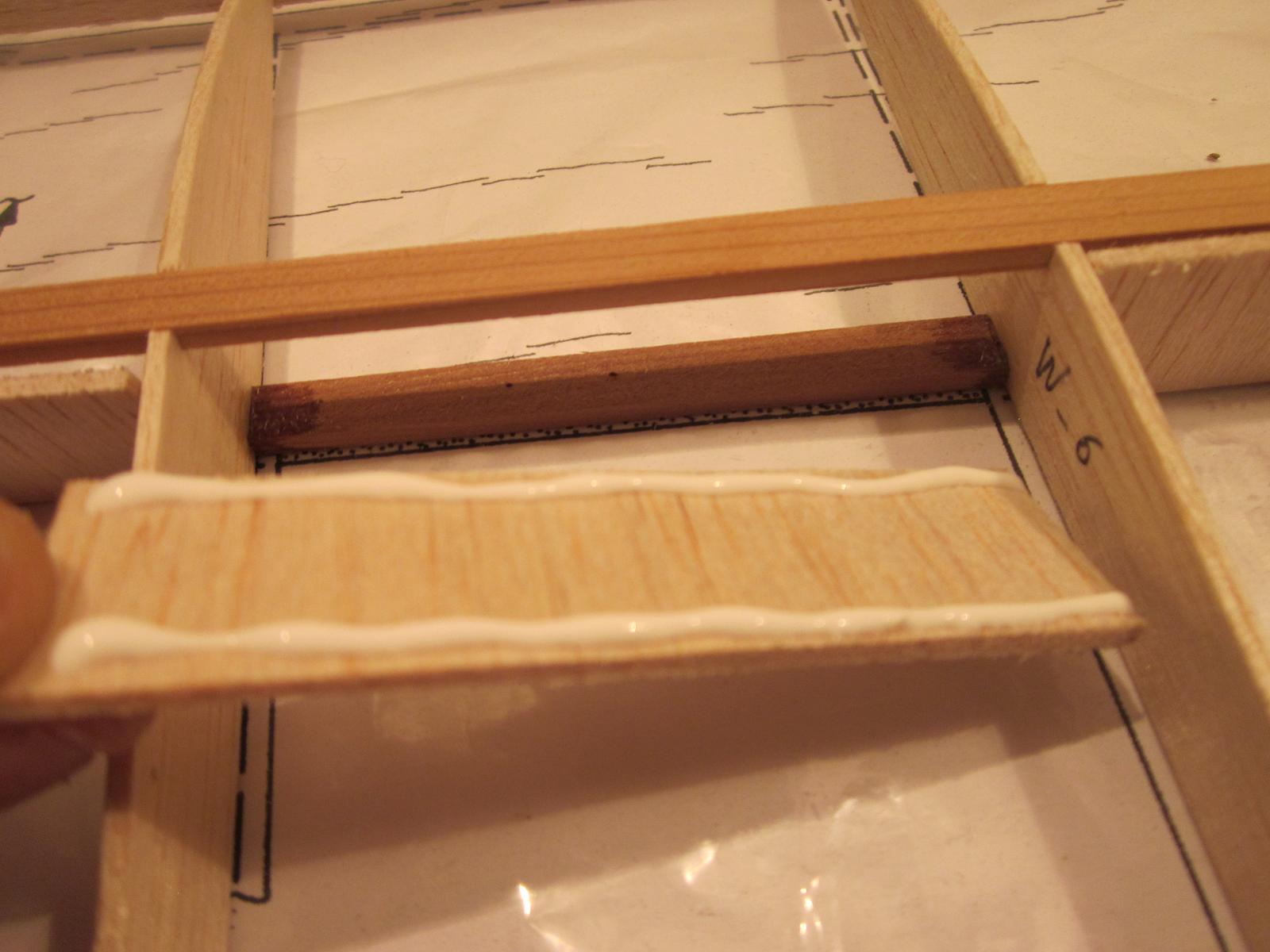 Bueno aquí dejo unas foticos de los refuerzos en balsa de 2mm de los largueros principales del ala,