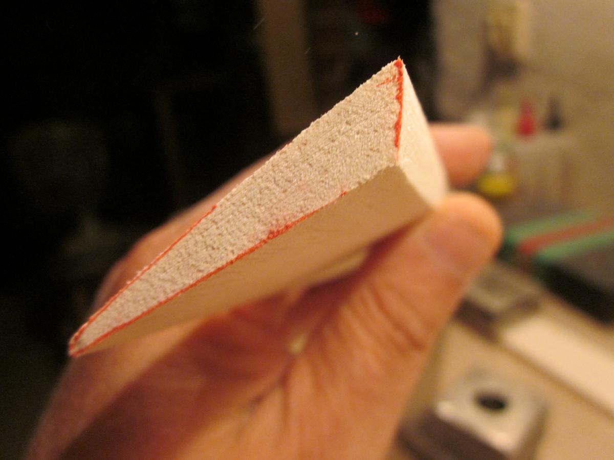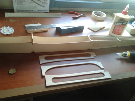En la fotografia se ve que hago unas pequeñas muecas en la cara que muestro de la cuaderna F1 , echas con un cutter que se ve al lado de esta , esto es un pequeño truco ó una tecnica de trabajo usada en la carpintería ó ebanistería que sirve y se hace cuando se pegan zonas lisas entre sí se rayan ó en su caso se punzonan para que el pegamento , en este caso la cola de carpintero que utilizo , al untarla en ambas caras y pegarlas con su debida presión , este pegamento entra en esos mini cortes ó endiduras haciendo de espiga una vez seco con lo cual existe mayor fiabilidad de pegado , y su resistencia a los golpes es mayor . :wink: :wink:
