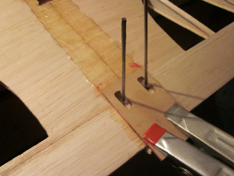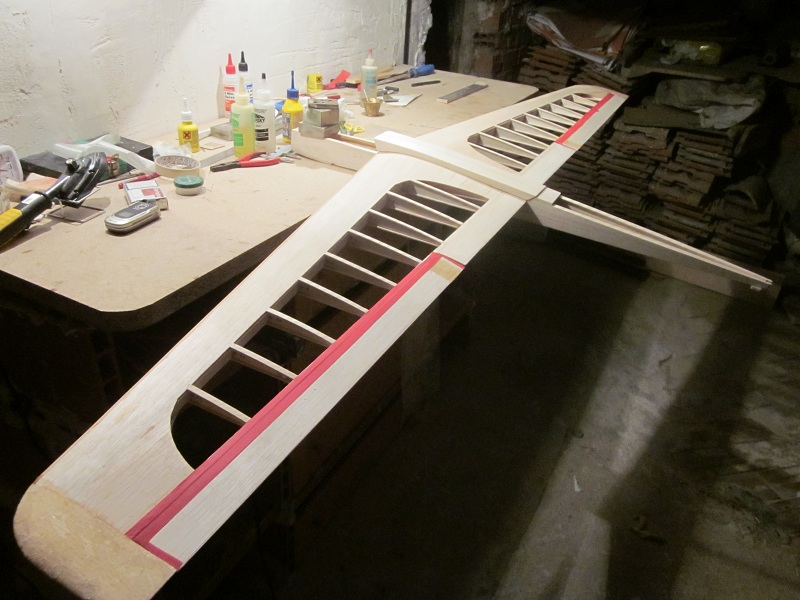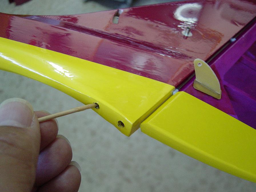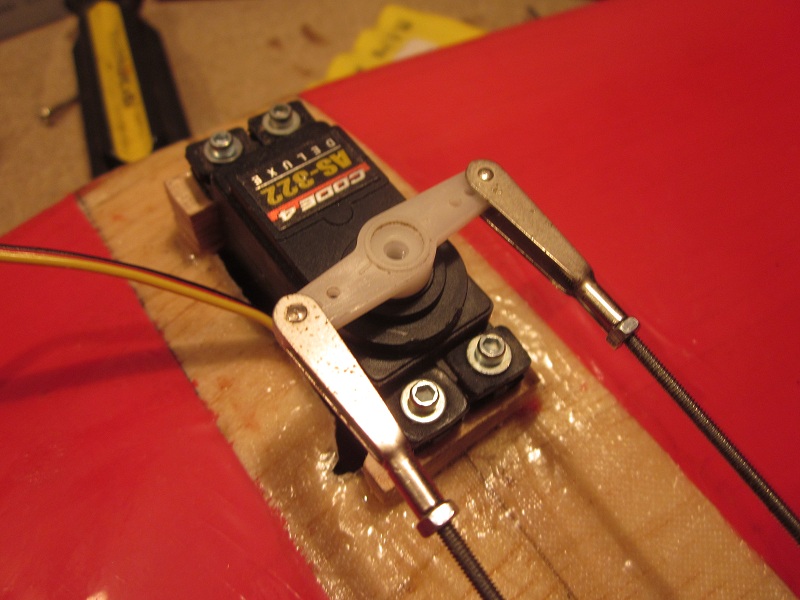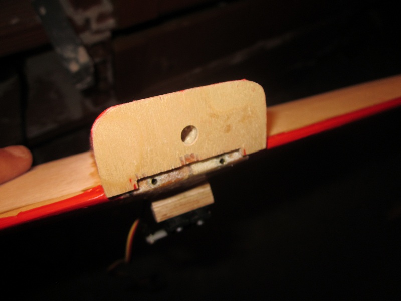 Juan, los brazos de los alerones no están bien no sé a ciencia cierta como lo has hecho pero viendo el varillaje al aleron y el complemento de balsa que has puesto pienso que hayas hecho el zurco en el larguero del borde de fuga lo que posiblemente te causará una falla estructural del ala por debilitarlo (corrígeme por favor si me equivoco o ház caso omiso a este comentario) dado que veo el brazo al aleron tan separado de este y con el complemento de balsa. Ese tipo de brazos se montan haciendo los zurcos en el brode de fuga,