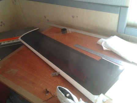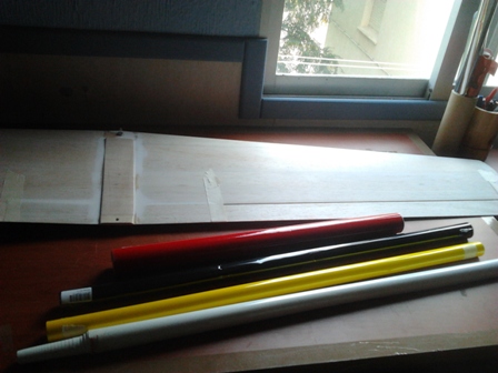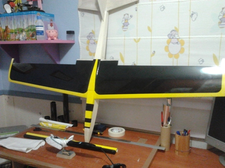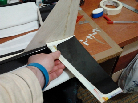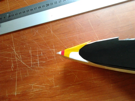 Bueno terminamos con el negro en el ala y ahora le toca al amarillo , lo pondre al largo del borde de ataque .Para las plantillas doy utilidad a las propagandas estas que nos invaden dia a dia nuestros buzones.