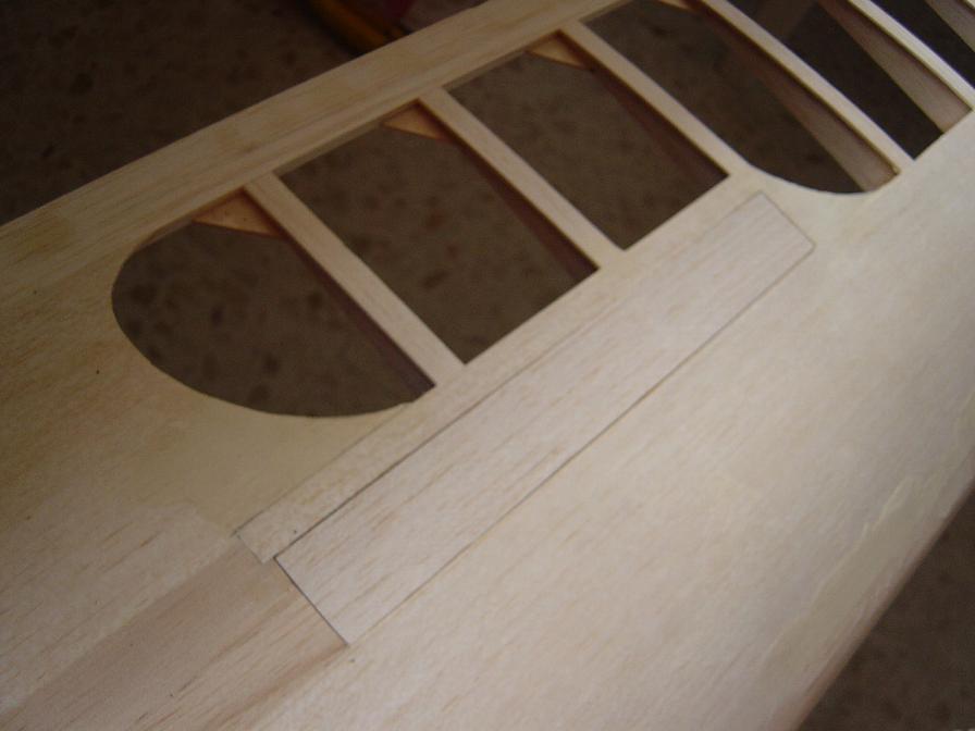 Por mi parte y como es debido las he colocado en esa posición, pegadas a los largueros de pino con epoxy lento y ajustándolas lo mejor que he podido.., mi idea inicial era usar además mechas de carbono pero cuando fuí a la tienda habitual no estaban disponibles y tardarían un tiempo en reponerlos, así que los hice de forma tradicional, sustituyendo tan sólo los largueros de las orejuelas de balsa por otros analogos y de la misma medida en pino. Además de lo expuesto entre las dos primeras costillas del centro lleva sendos tacos de relleno de balsa para los tetones y tornillos de fijación, entelada con epoxy lento la zona y refuerzos de contrachapado de 2mm. en el borde de salida. Supongo que será suficiente. Es lo mismo que hice con el primer modelo en su tiempo y me soportó perfectamente muchos lanzamientos con el Heavy Duty High Start de goma quirurgica y los tornos electricos en Sevilla en competición. No creo que volando derechito con su motorización electrica y sin pasarlo de velocidad y algún looping amplio ocasional que le haga el ala esté sujeta a mayores esfuerzos. Sigo con los pequeños detalles, como el cierre de la cabina con imanes y alguno que otro antes del lijado final.