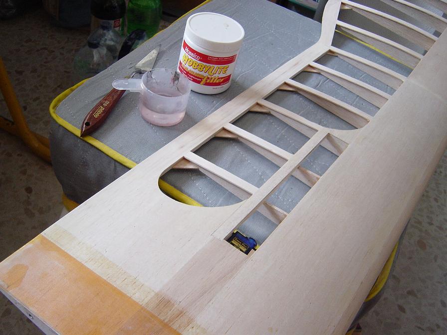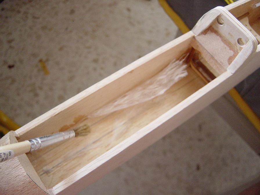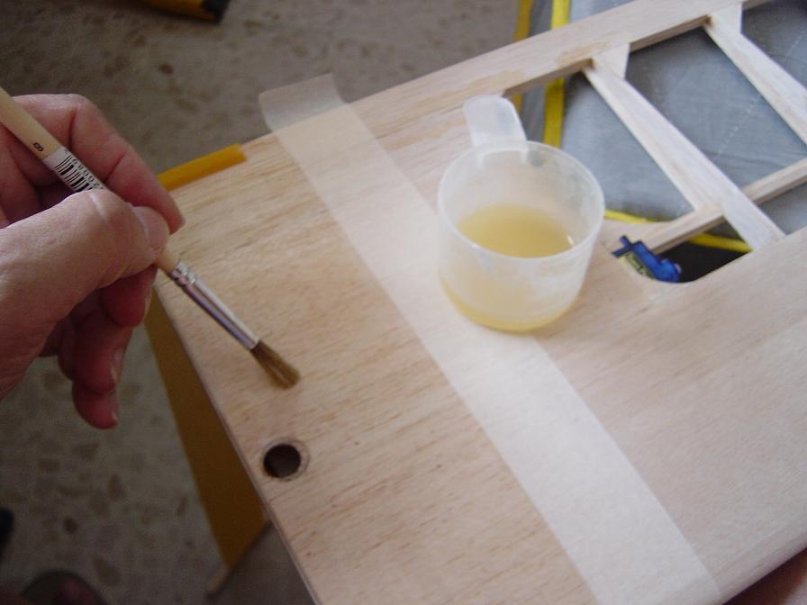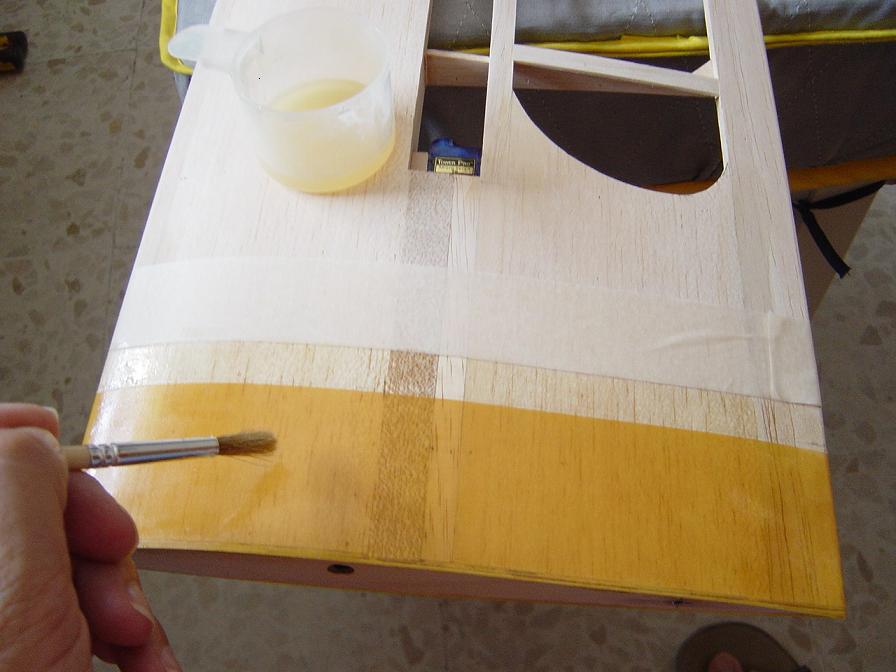 En lo particular y dado el caso para reforzar la parte central de las alas del AR-1 lo haría con fibra directamente utilizando la técnica que muestra Manolo con el epoxy pero sin el organdí ...... los aviones como el AR-1 traían una cinta de tela de fibra (nylon horneado) de 170grs. (6oz.) de unos 7cms. de ancho que le daba la vuelta completa al ala. Ojo, es una sugerencia si consideras que el refuerzo con organdí + fibra te es más conveniente y seguro tampoco hay problema alguno.