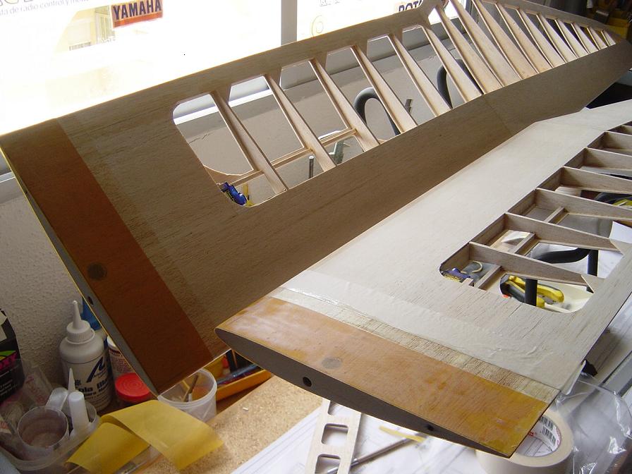 En la base del vertical coloqué fibra de 30grs. cerca de 2cms. de ancho y hasta ahora con todo el tema de montar, desmontar y volar no he tenido problema alguno. También hice lo mismo en los horizontales de un Sagitta de Carrera que se movían totalmente como los del AR-1, en el Sagitta original y dado el tamaño del avión no representaban ningún problema pero el que hice tenía 127cms. de envergadura y el grosor de los horizontales era de 4mm.