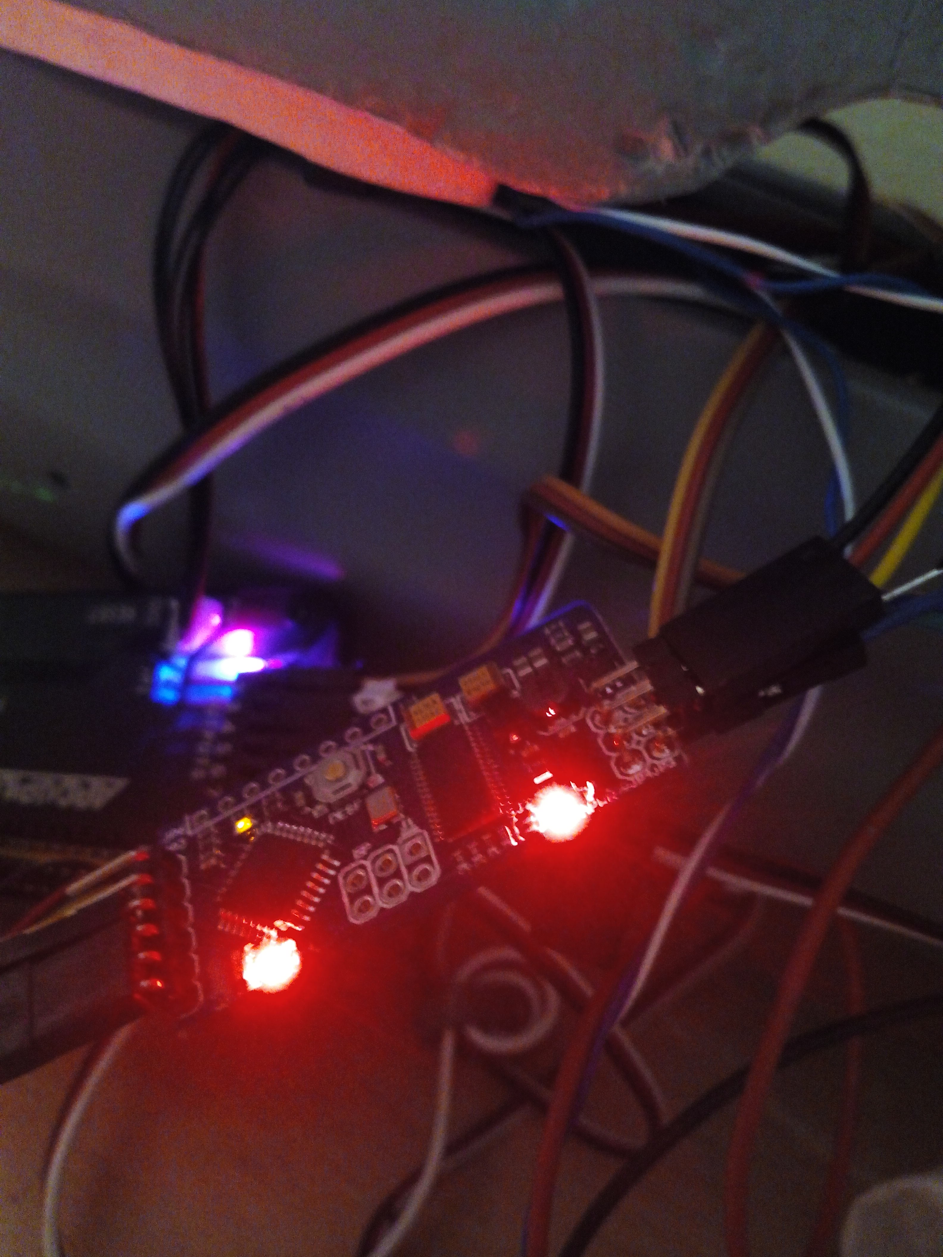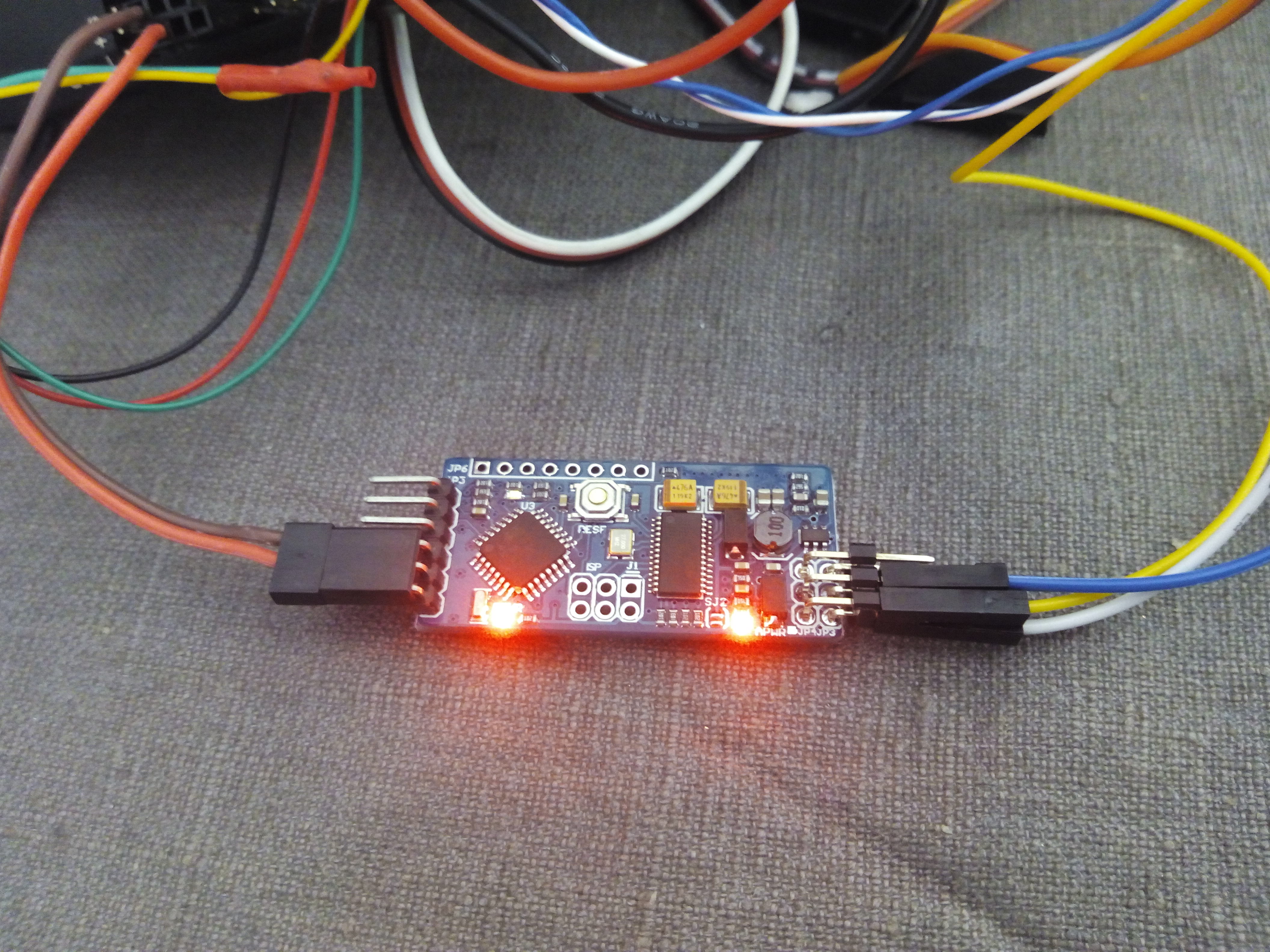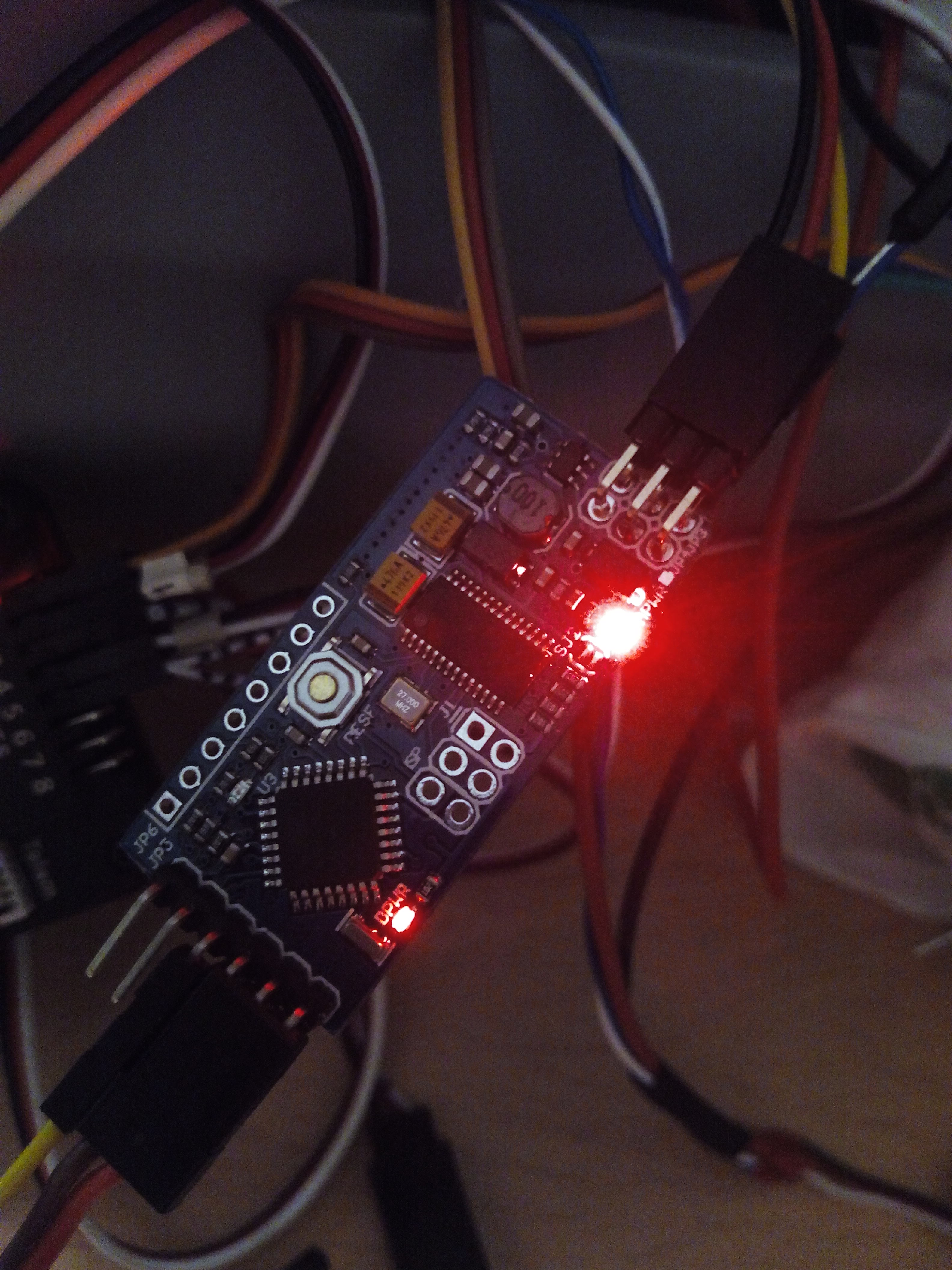 El led rojo de alimentación, aparte de estar mucho mas tenue que antes, parpadeaba. Le he añadido la toma de 5V desde el APM y así se ve.