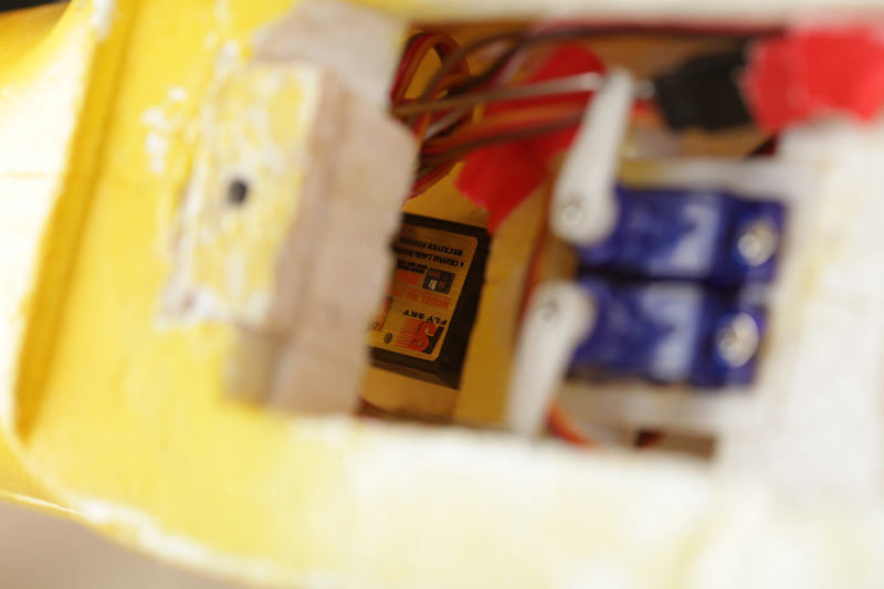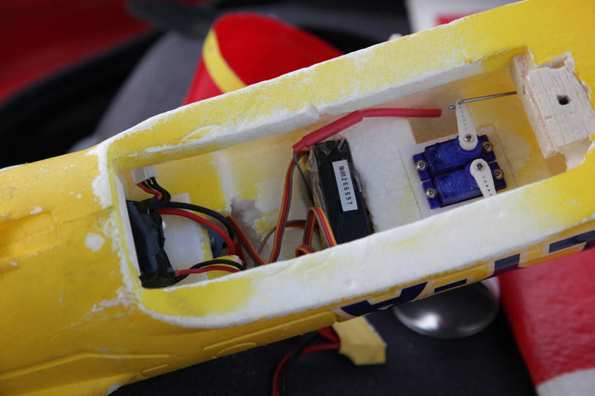 bueno, ya están hechos todos los cambios en este avión. Aparte de todas las mejoras anteriores he dado por terminado su tuneo, con la instalacion de servos en las alas y colocandole una varilla en el timon de profundidad, también colocándole unos tornillos en las alas para evitar el movimiento con fuselaje q quedaba algo holgao.