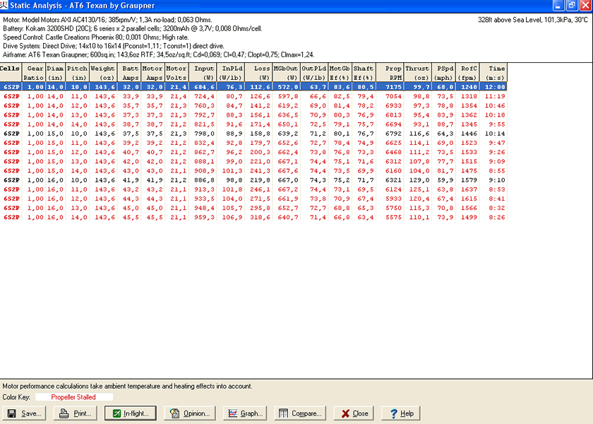 Hélice: entre una 14x10 y 15x10...depende de los consumos y potencia según el analizador que esta vez sí usaré.